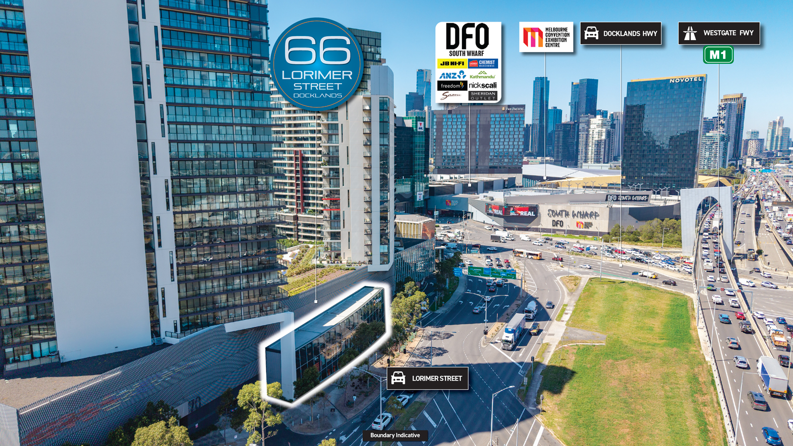 - Massive frontage providing exceptional branding exposure to Lorimer Street and the West Gate Freeway