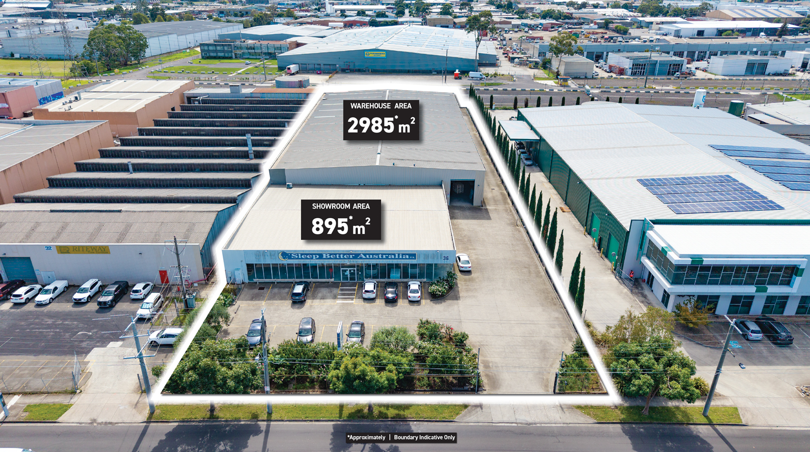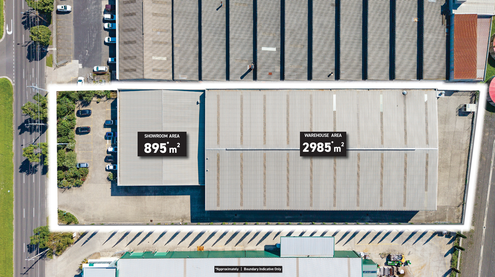 The property comprises a high-quality, single-level showroom of approximately 895 sqm, ideal for display, trade sales, or customer-facing operations. This is complemented by an expansive warehouse of approximately 3,000 sqm, designed for efficiency and accessibility, featuring multiple roller shutter doors and excellent internal clearance to accommodate a range of industrial uses.